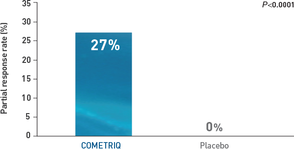 Only patients in the COMETRIQ arm achieved a partial response1